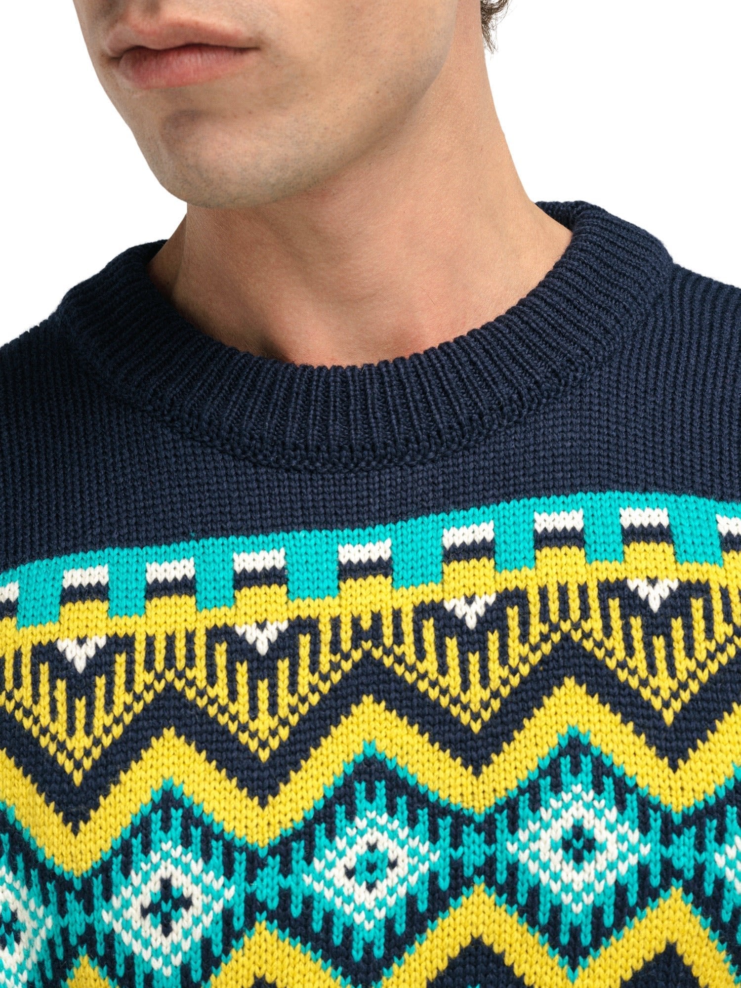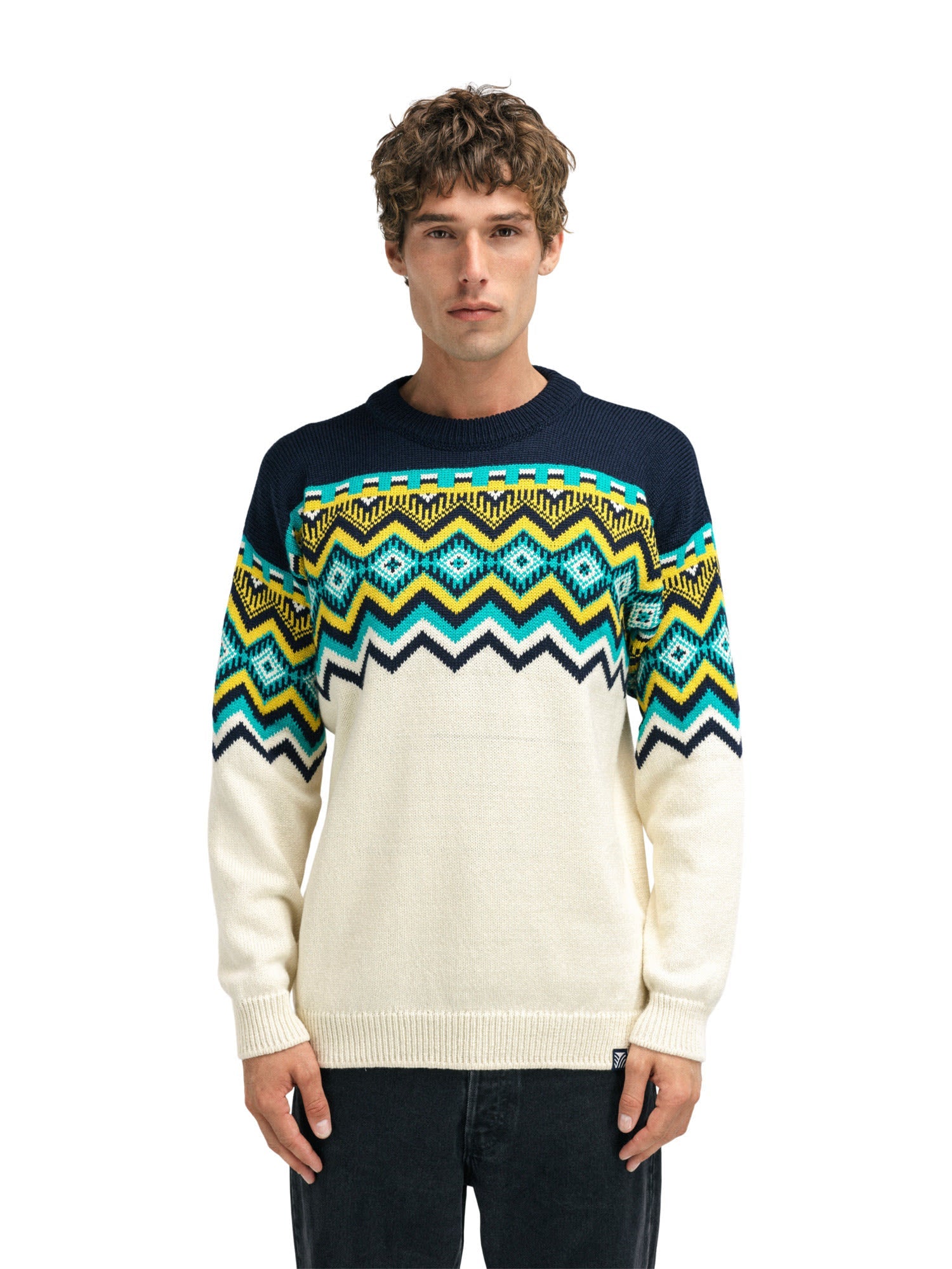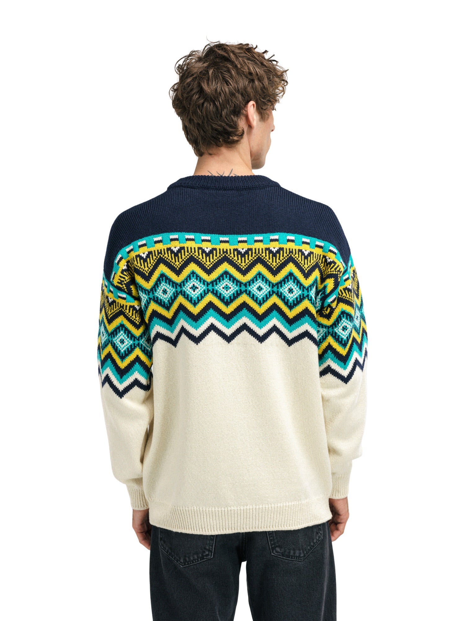 The Randaberg Sweater by DALE OF NORWAY for men is a super soft, patterned merino jumper with bold colour combinations.