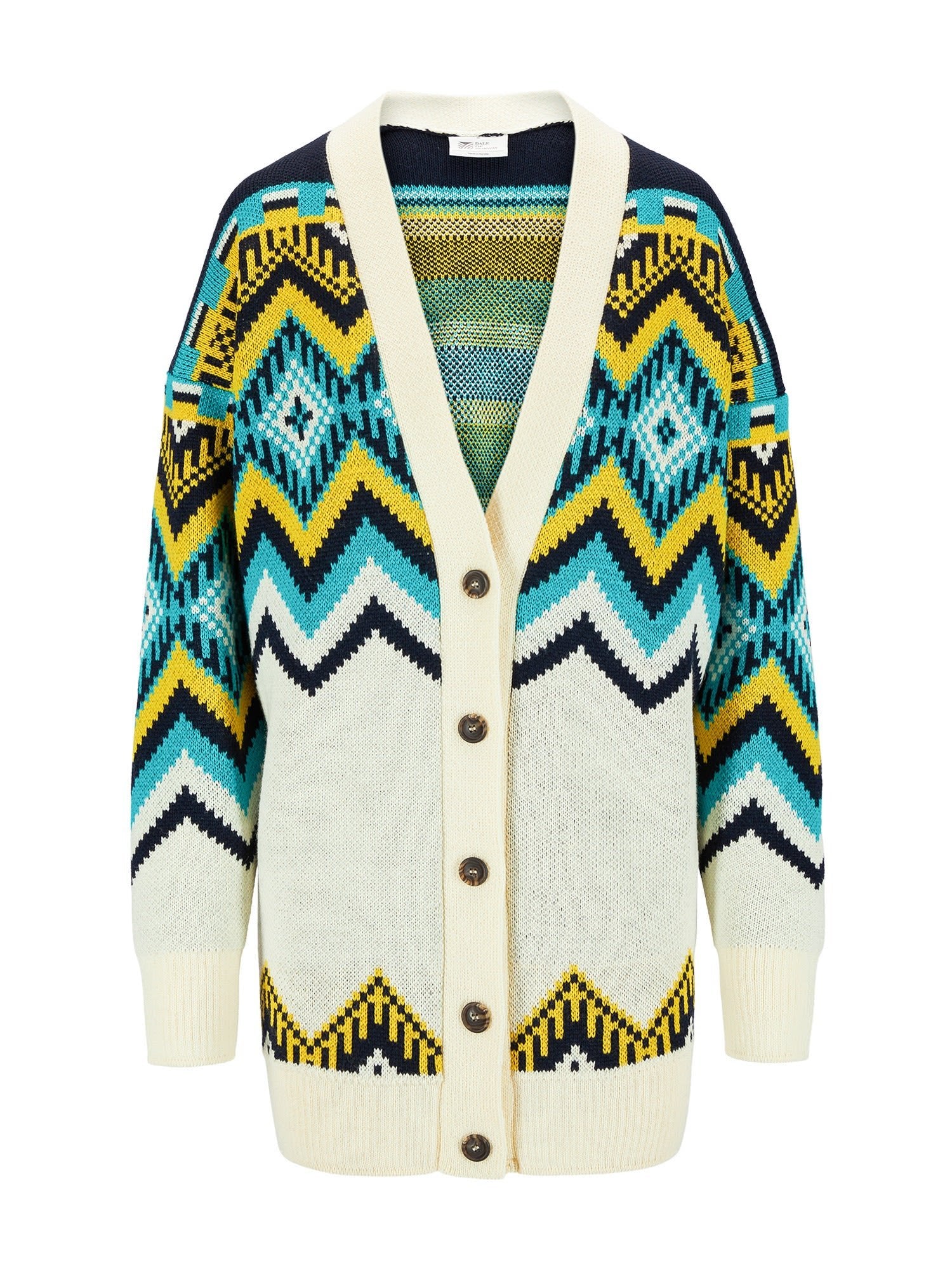 The Skåla Cardigan by DALE OF NORWAY is an oversized, long woollen cardigan for women with dropped shoulders and a loose fit.