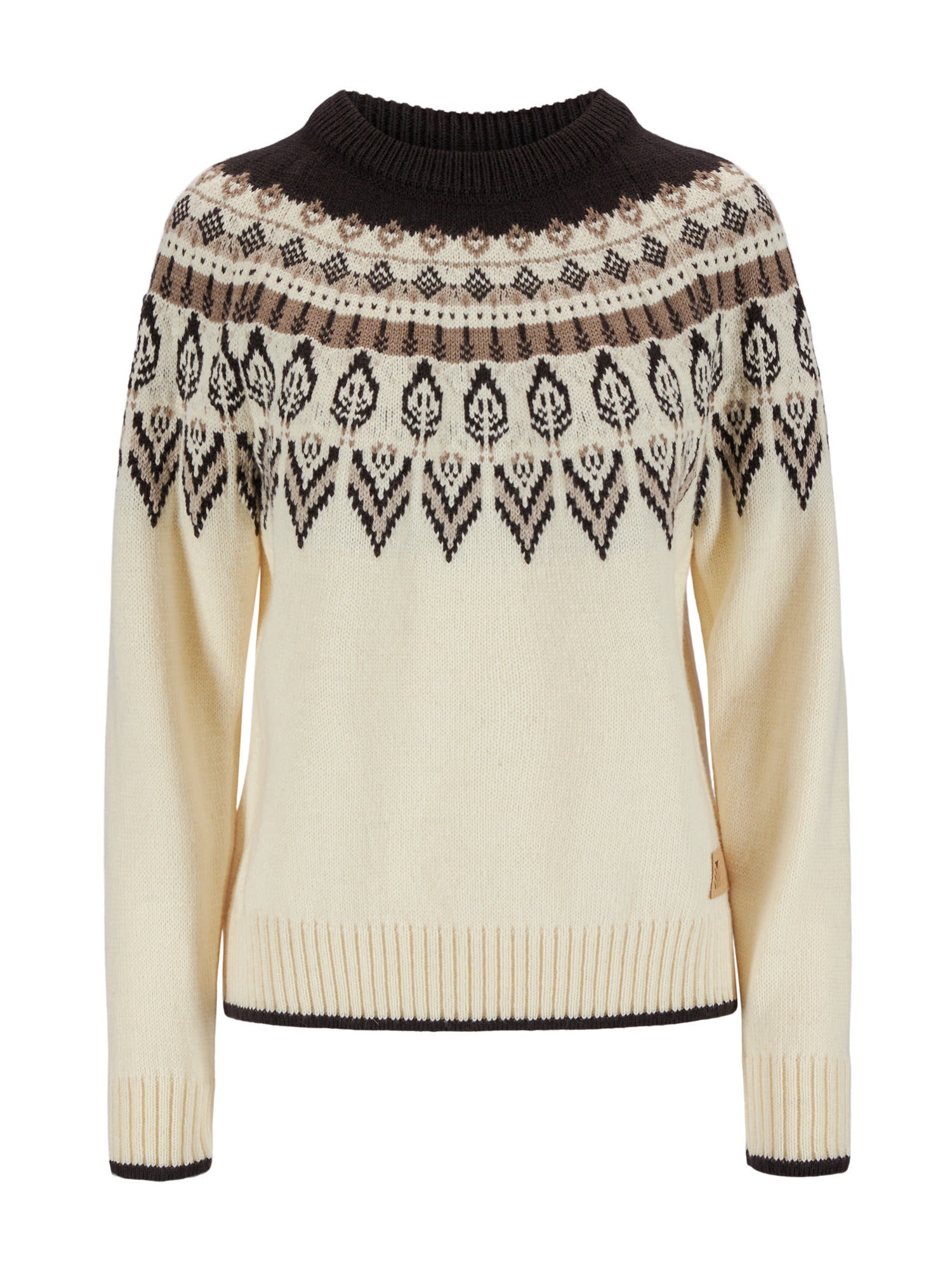 The Sula Sweater by DALE OF NORWAY is a heavy, patterned wool sweater for women with a loose fit.