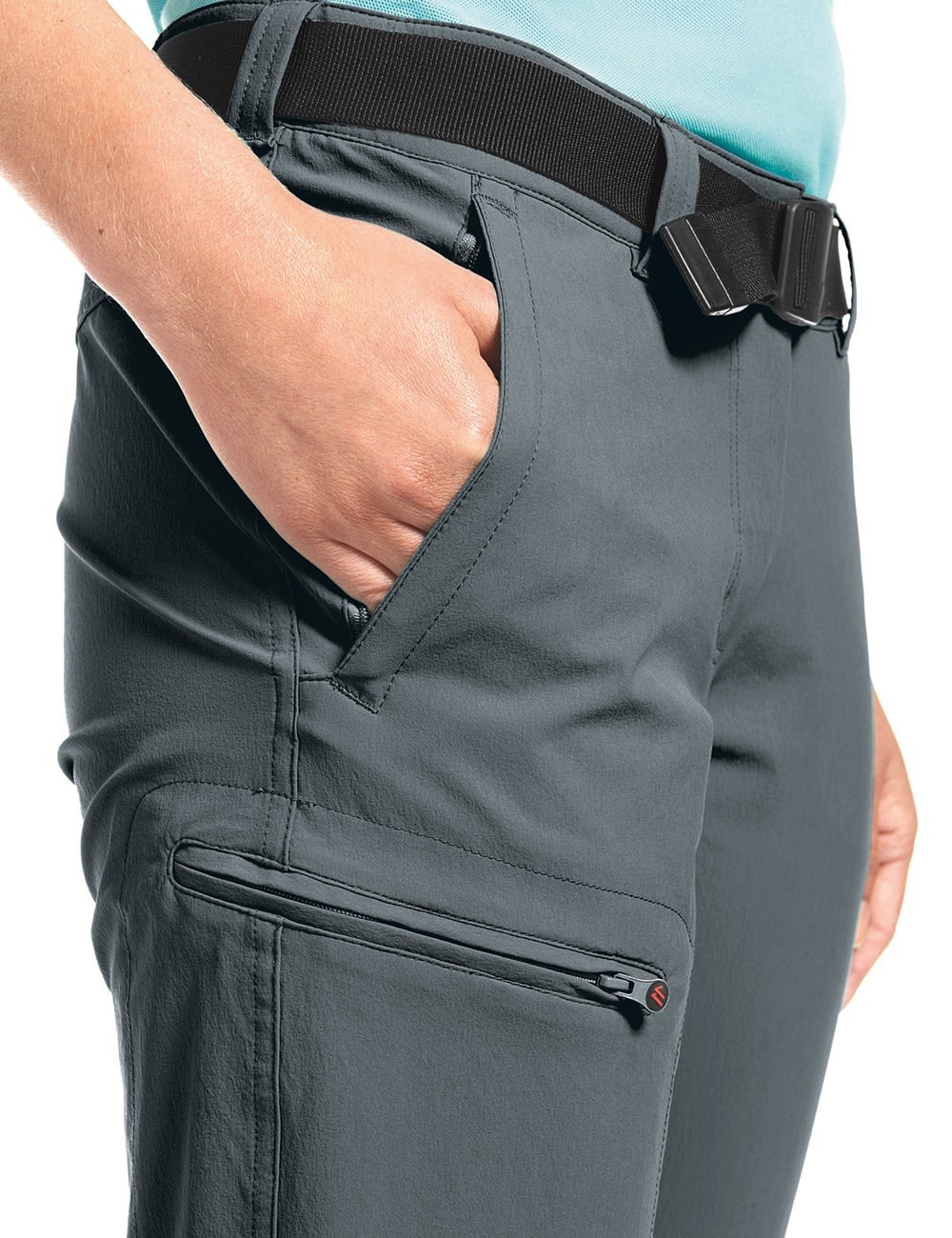 Even a brief shower isn't a problem: the environmentally friendly, PFC-free finish makes these hiking pants water-repellent – and as soon as the rain has stopped, they will quickly be dry again thanks to dryprotec technology. The Lulaka 7/8 by MAIER SPORTS have room for smartphones, keys, etc. in three spacious pockets with zip closures – and valuables can also be stored in the inside security pocket.