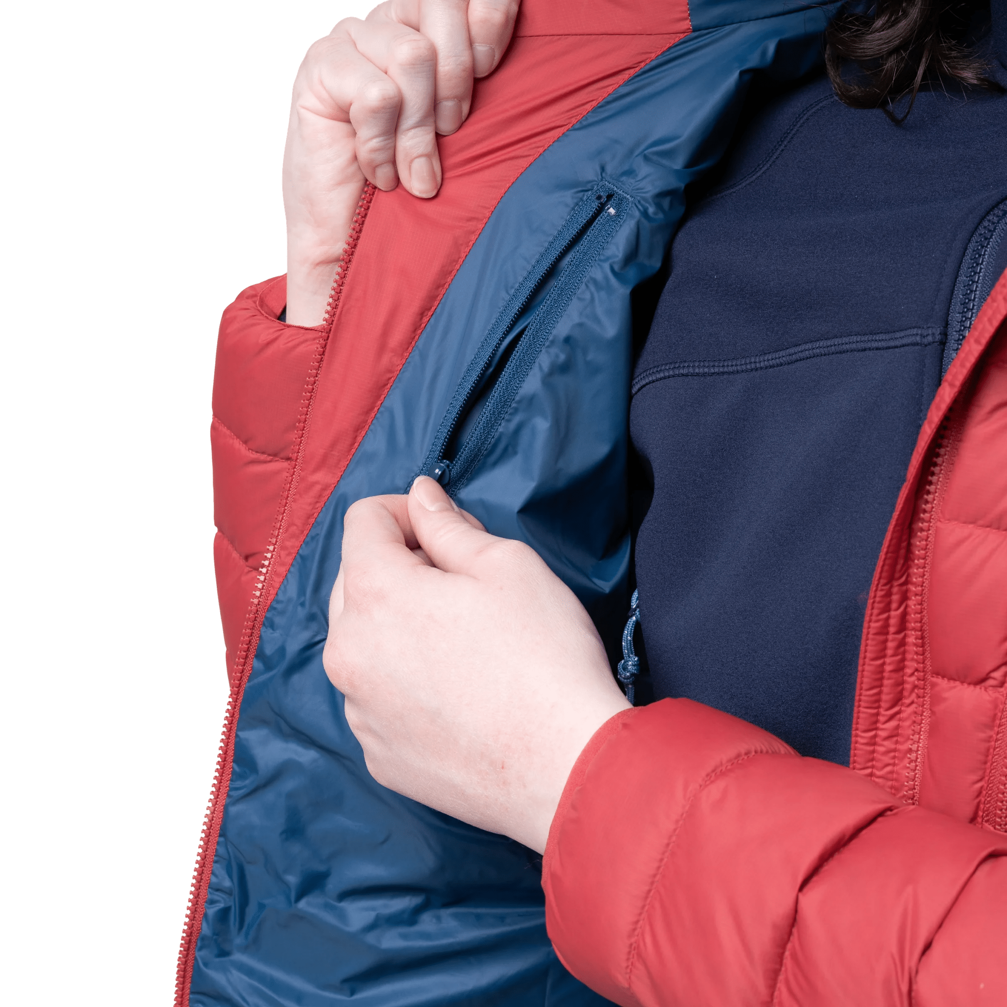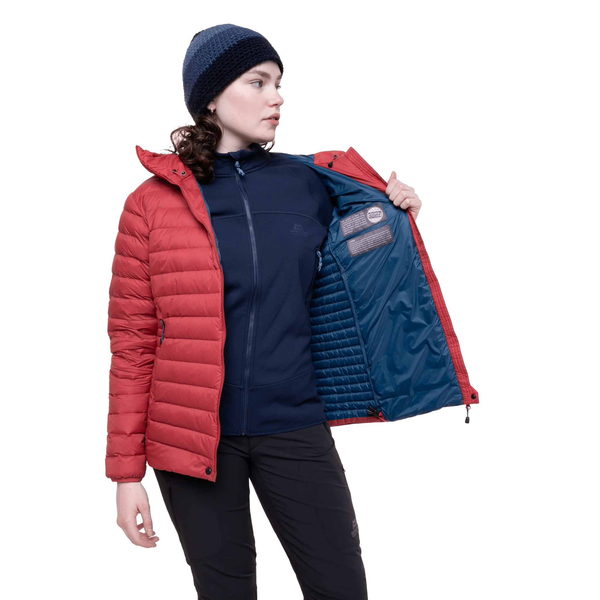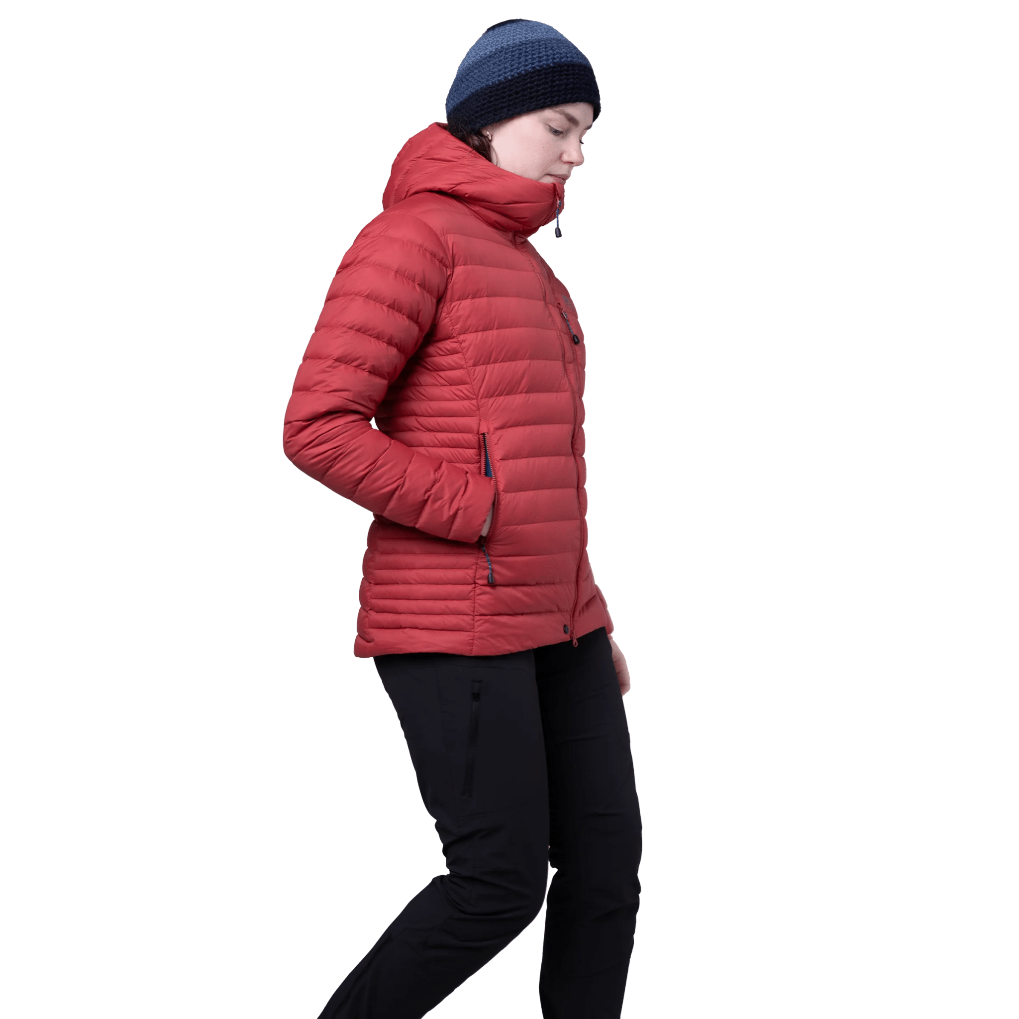 Leichte, nachhaltig produzierte angenehm warme Daunenjacke mit Kapuze aus 100% recycelter Daune und 100% recyceltem Oberstoff.