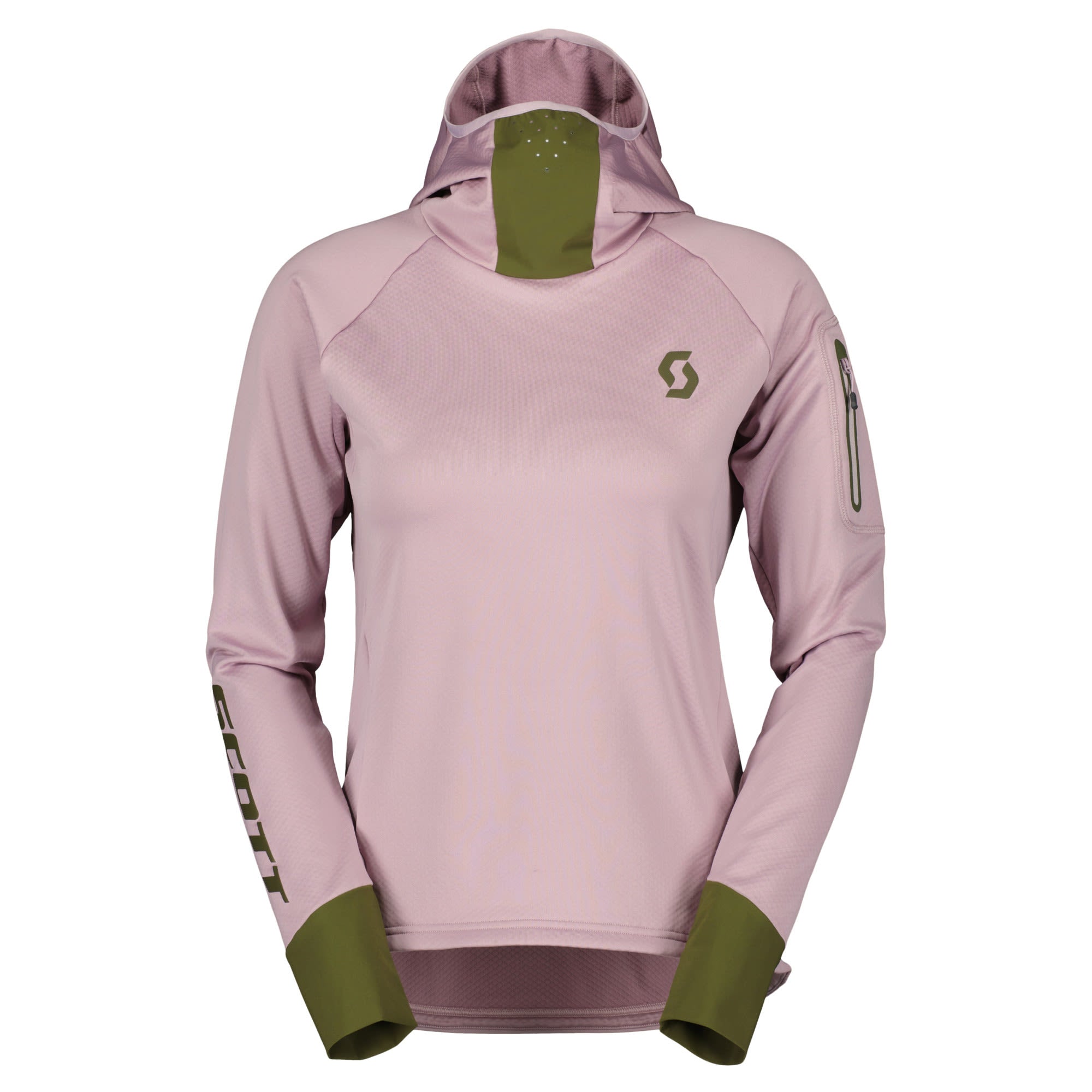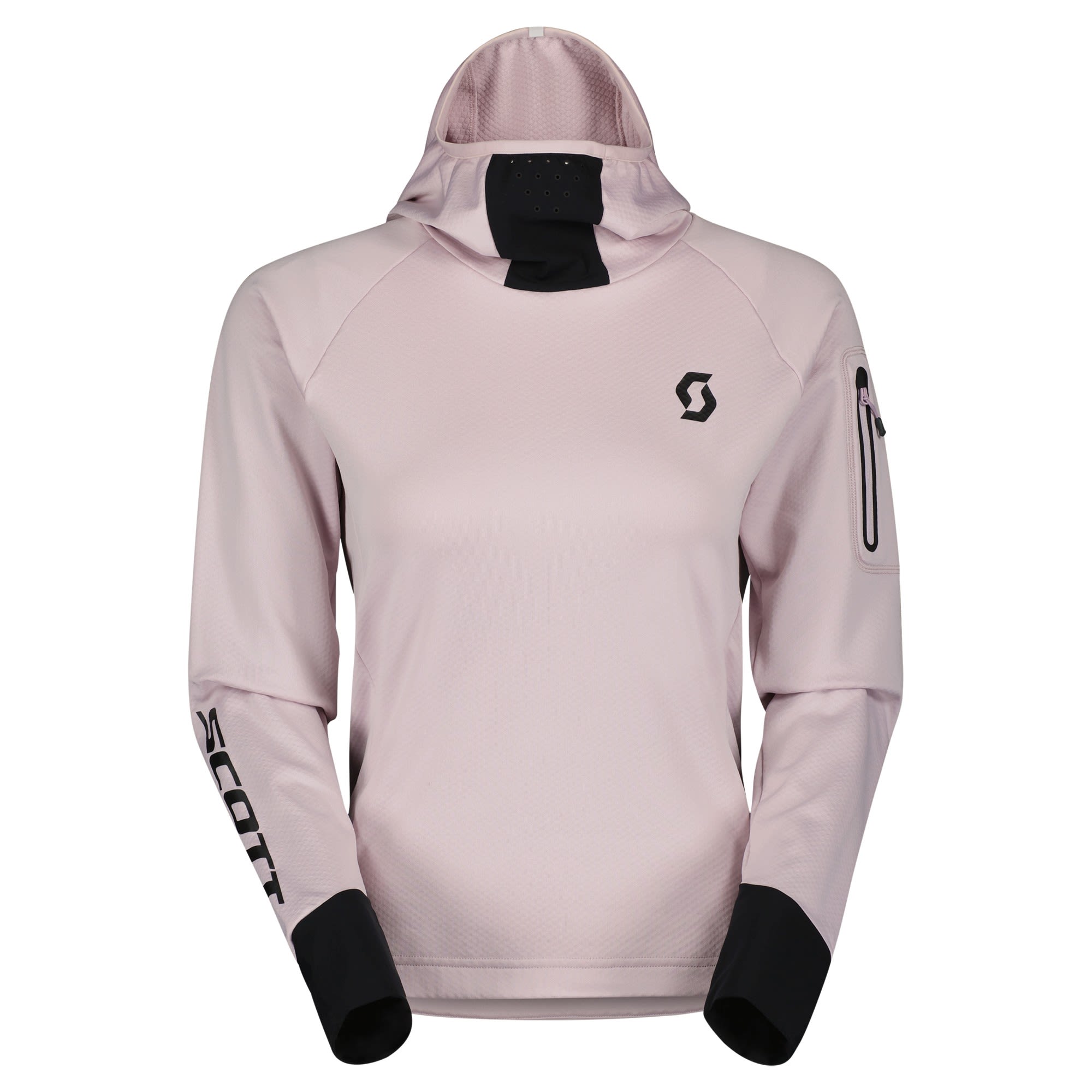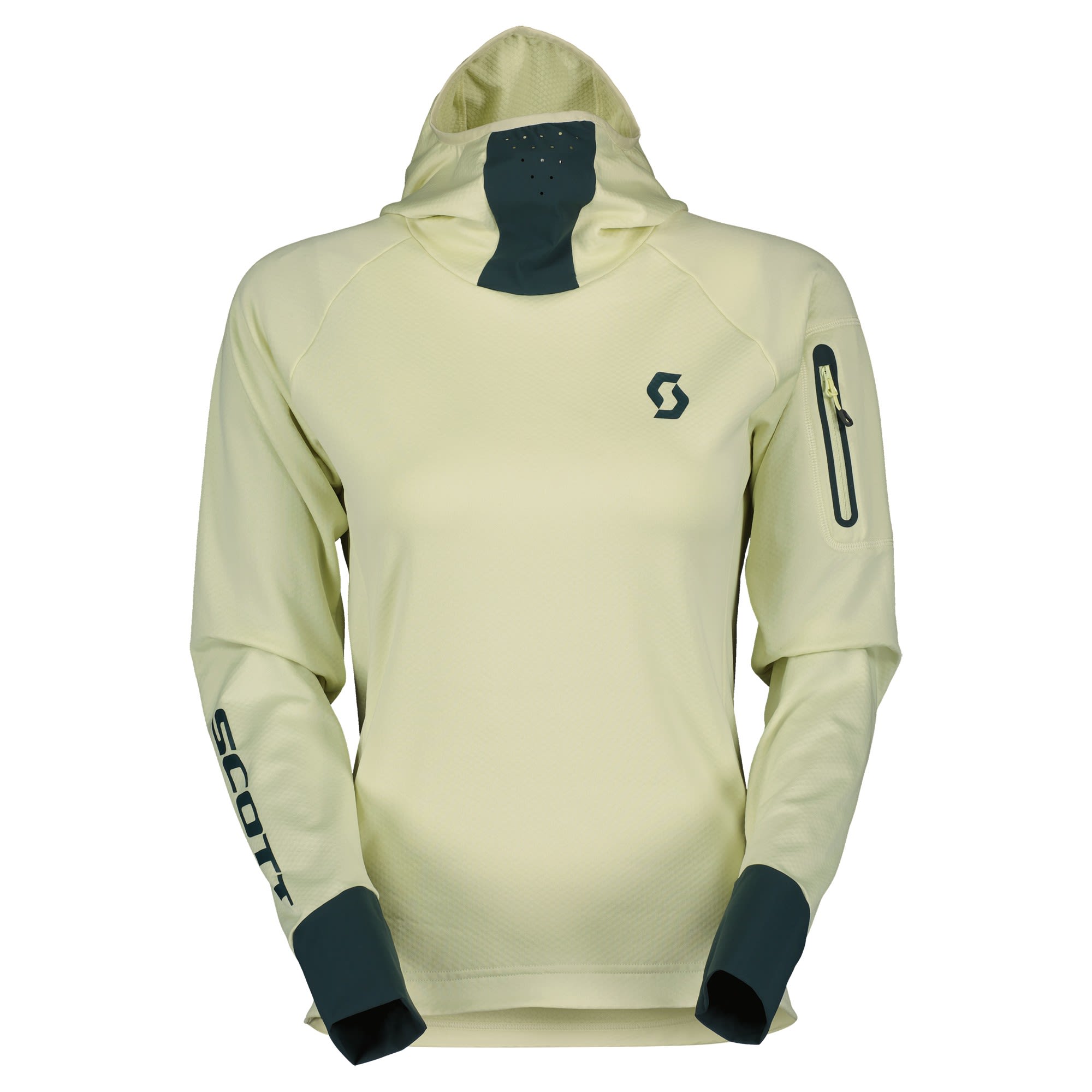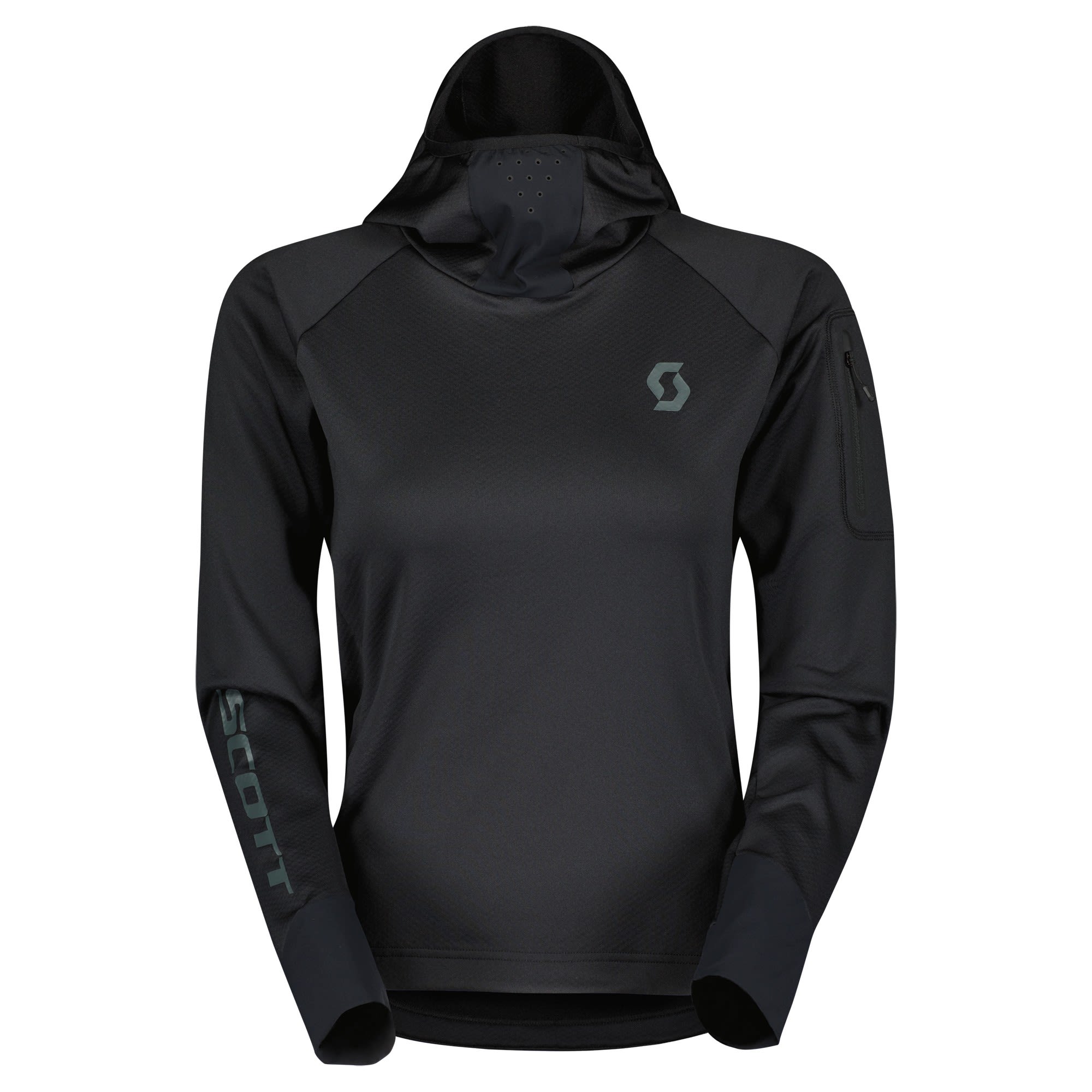 The fleece balaclava hoody features vent holes for extra breathability while you're pushing hard. A waterproof lower back panel makes sure you stay protected and comfortable in wet conditions. The zipped back pocket of the Trail Storm Long-Sleeve Hoody by SCOTT for women keeps your essentials secure while riding. And for those using the chairlift, SCOTT included a zipped arm pocket for easy access to your lift pass.