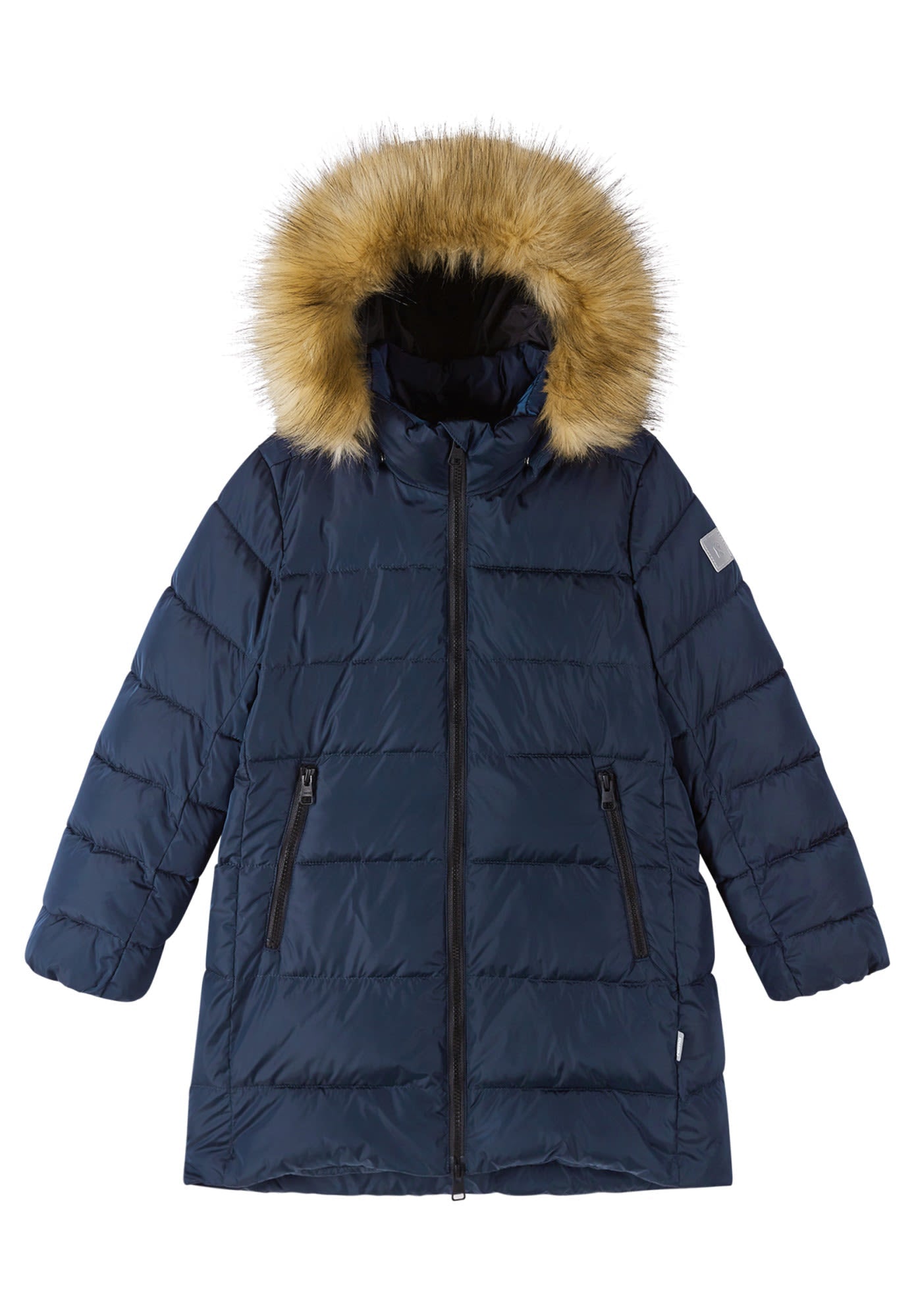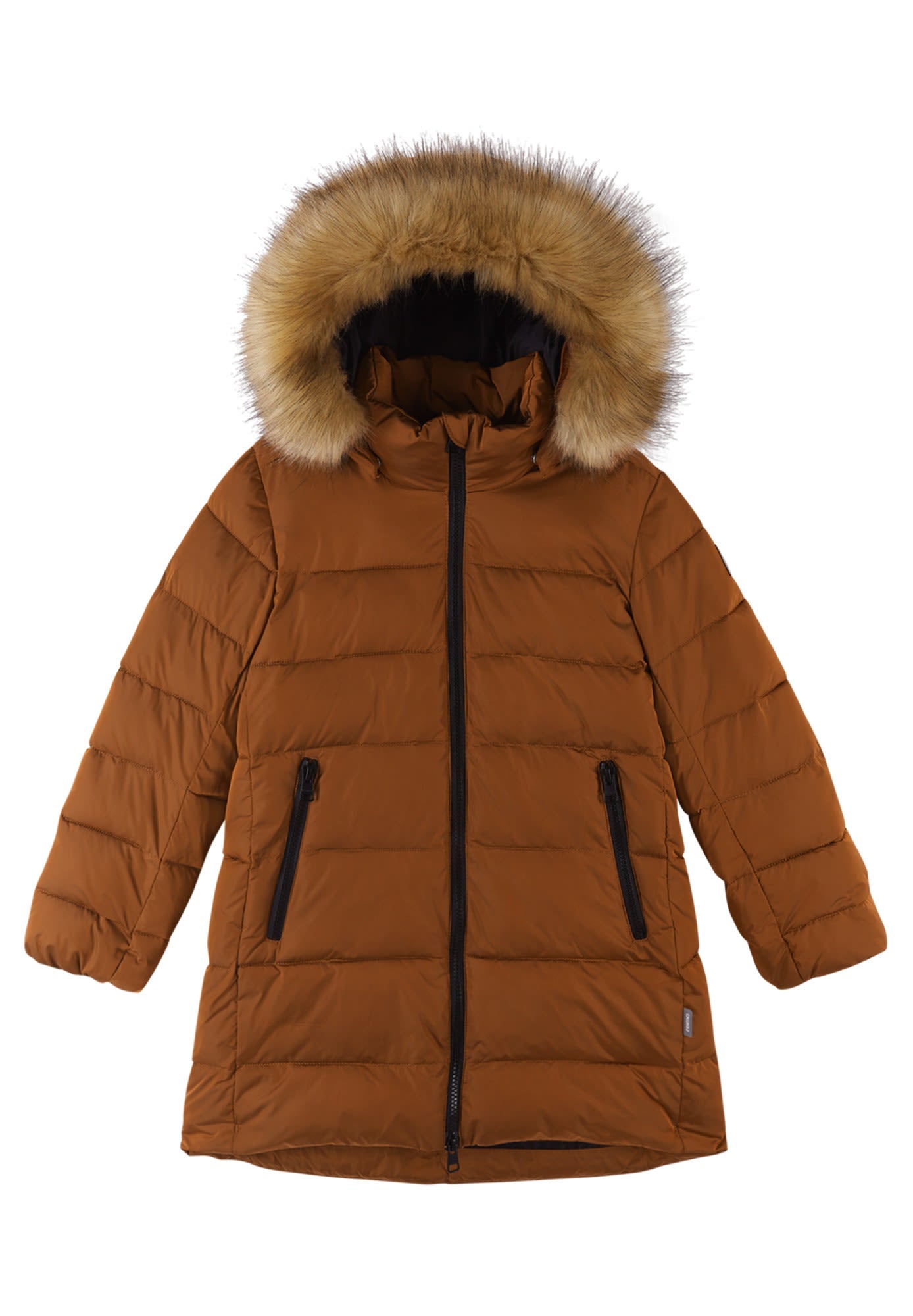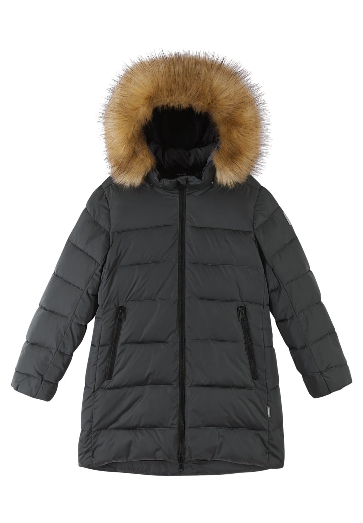 The insulated girls' Lunta Winter Jacket by REIMA is a true all-winter warmer, yet you can detach the faux-fur trim if you prefer a less Arctic look.