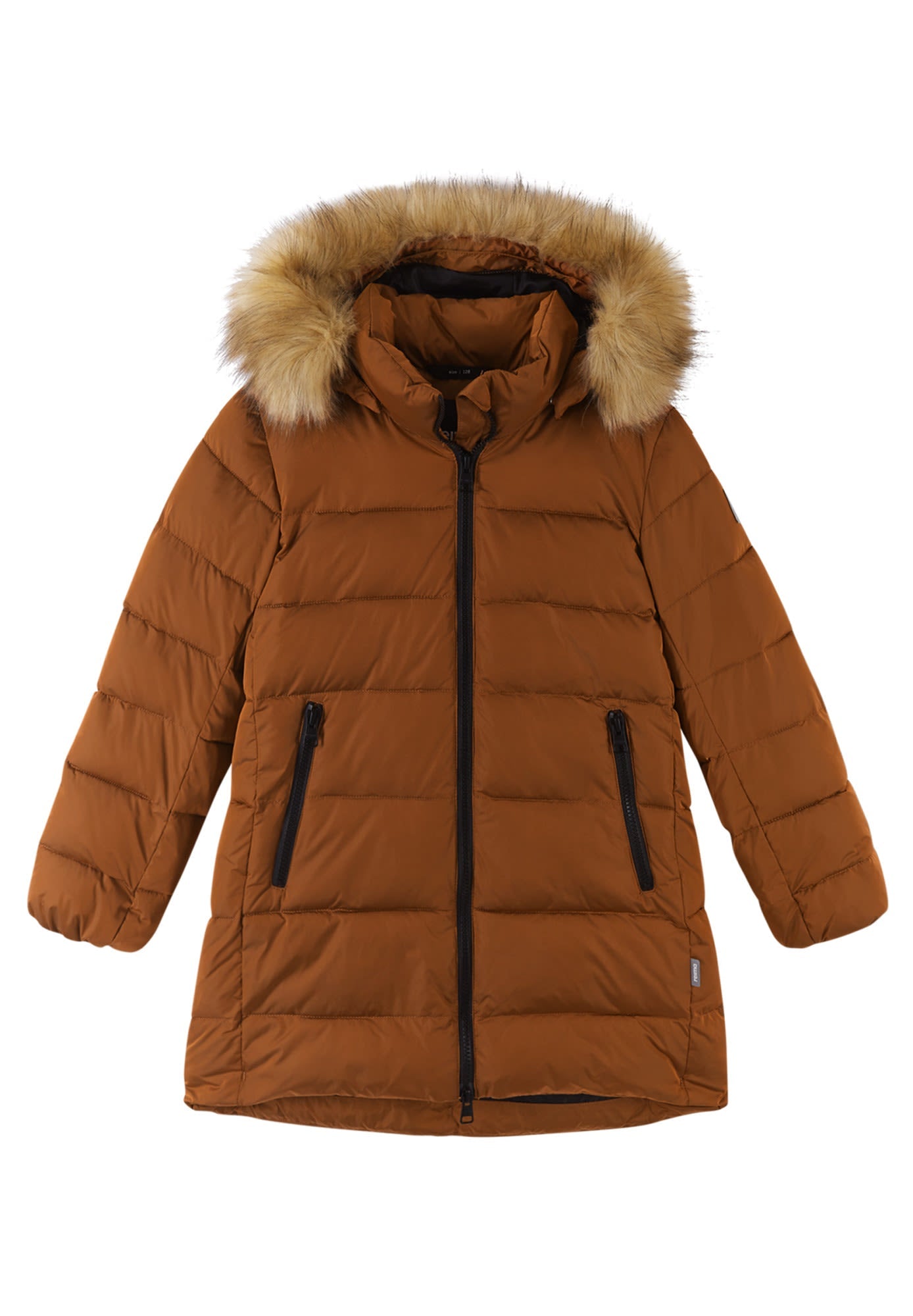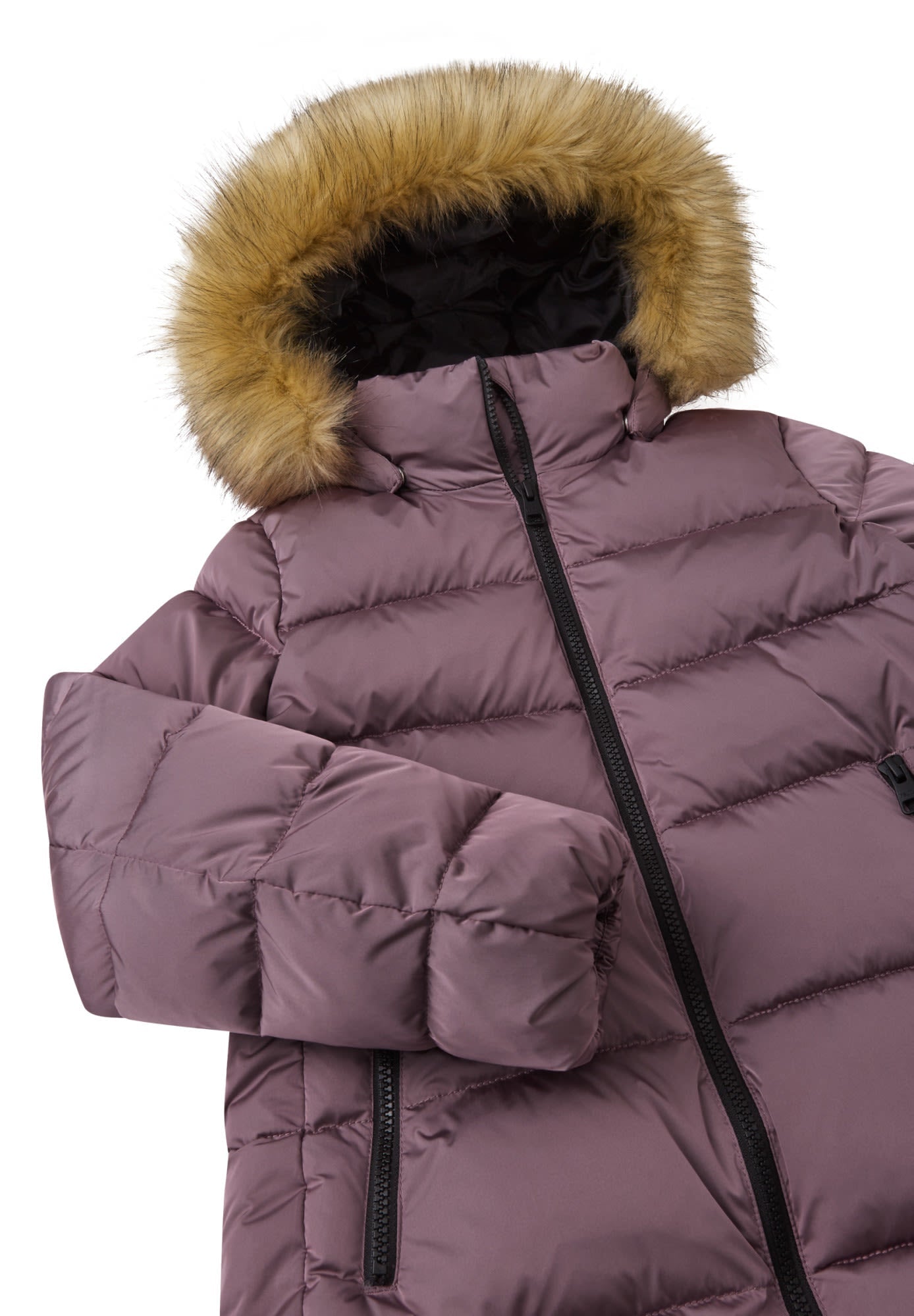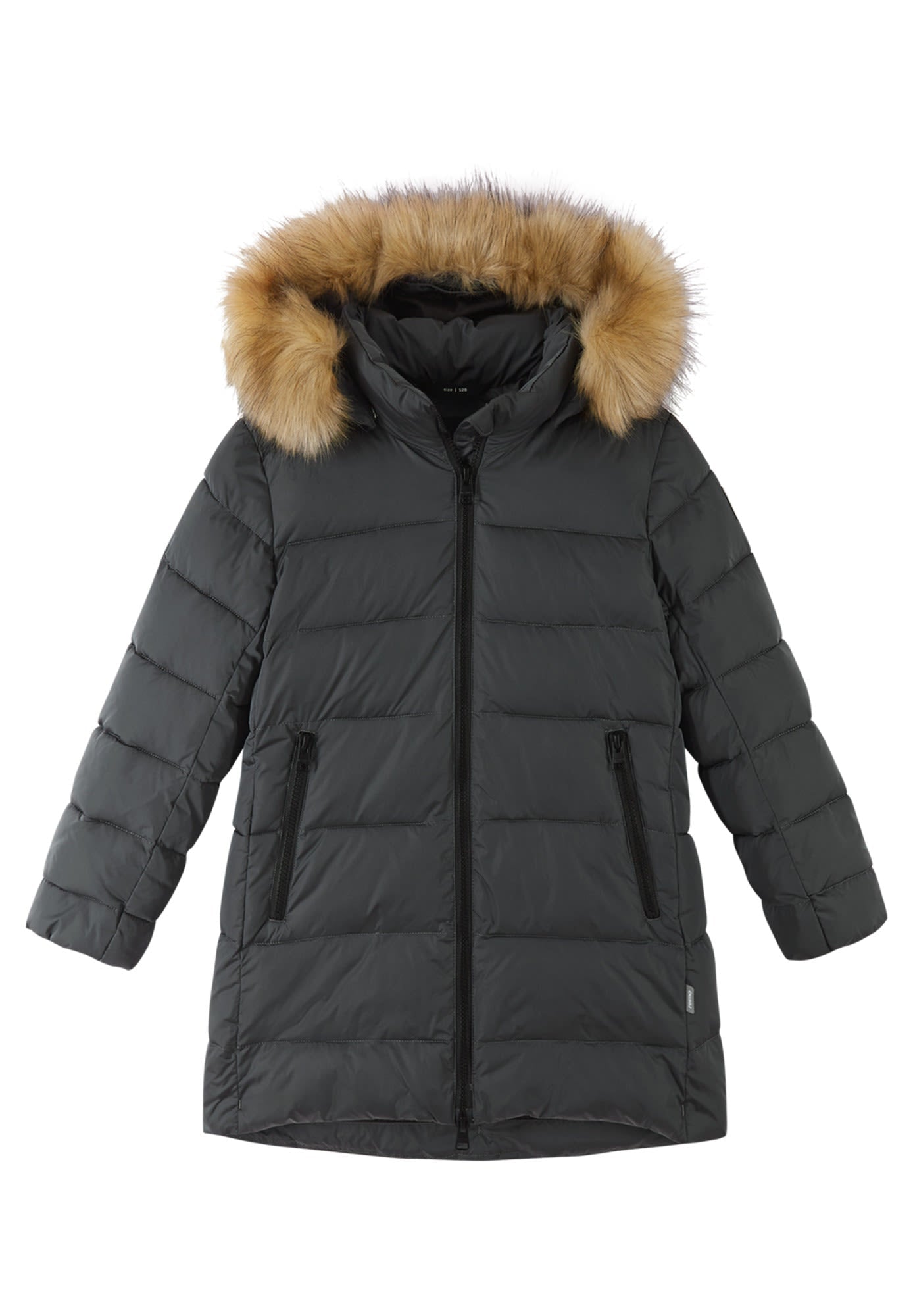 The insulated girls' Lunta Winter Jacket by REIMA is a true all-winter warmer, yet you can detach the faux-fur trim if you prefer a less Arctic look.