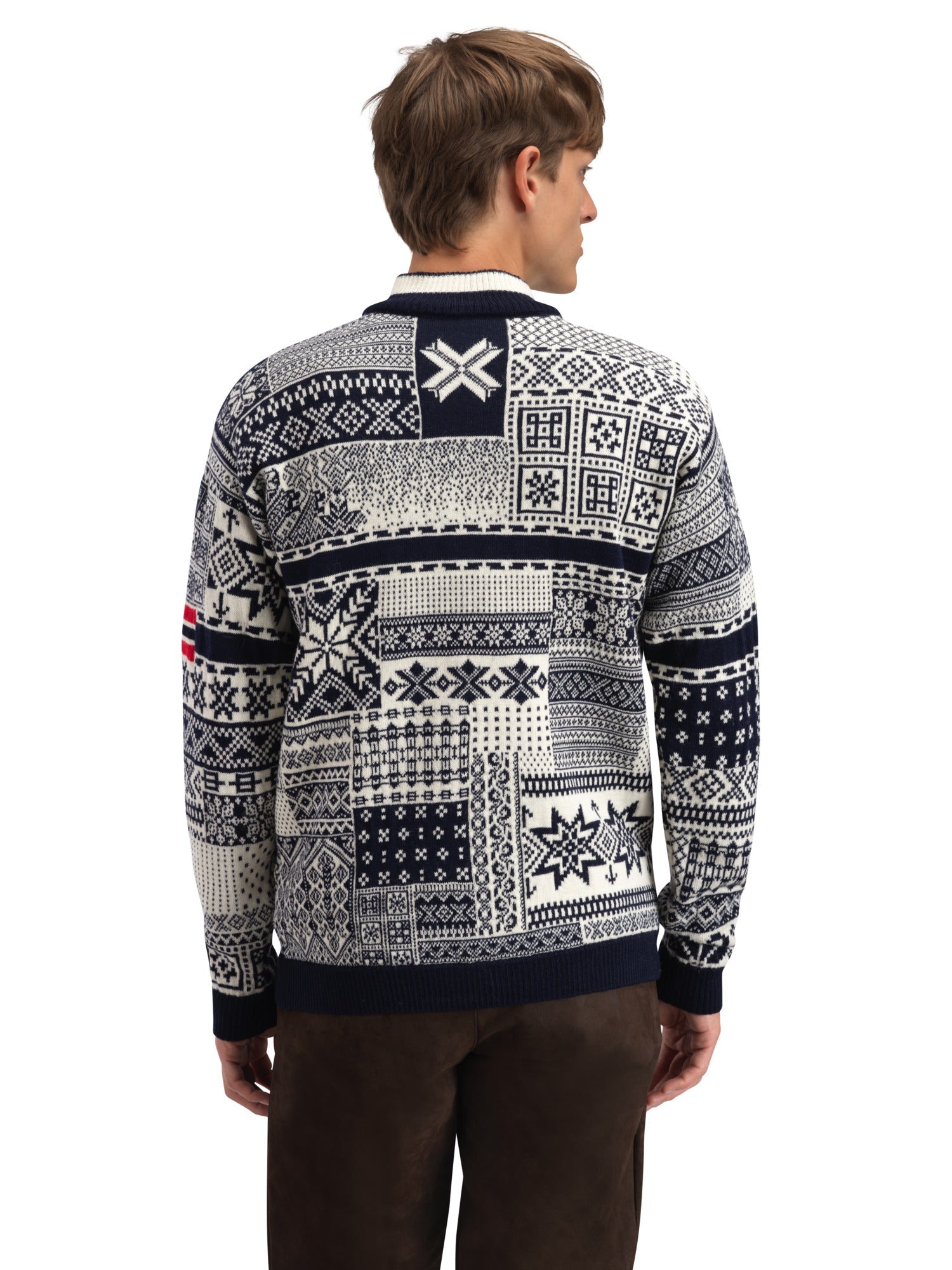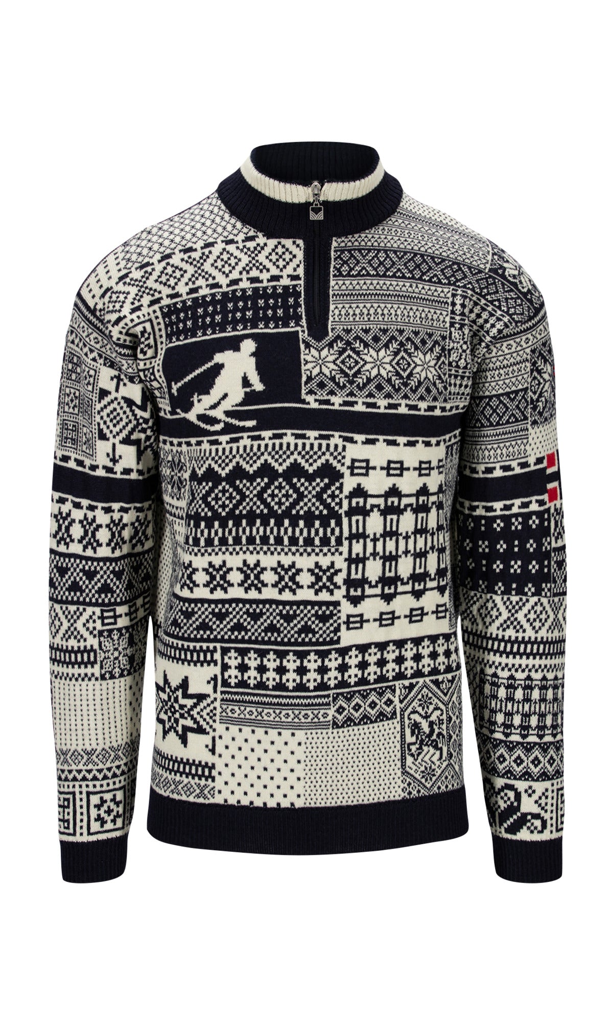 The History Sweater by DALE OF NORWAY for men is a playful homage to Olympic history and is made from fine Norwegian wool from the very first shearing of sheep.