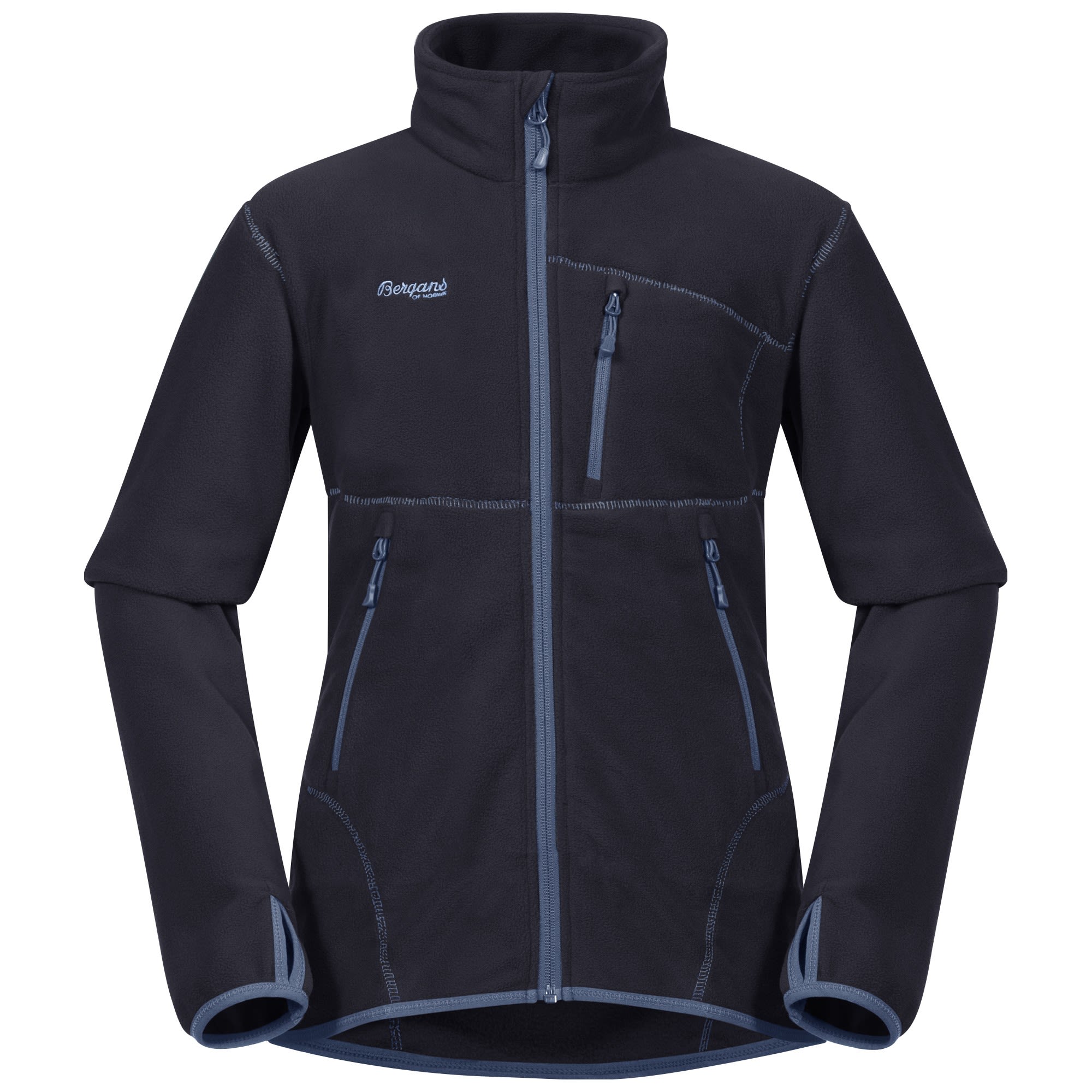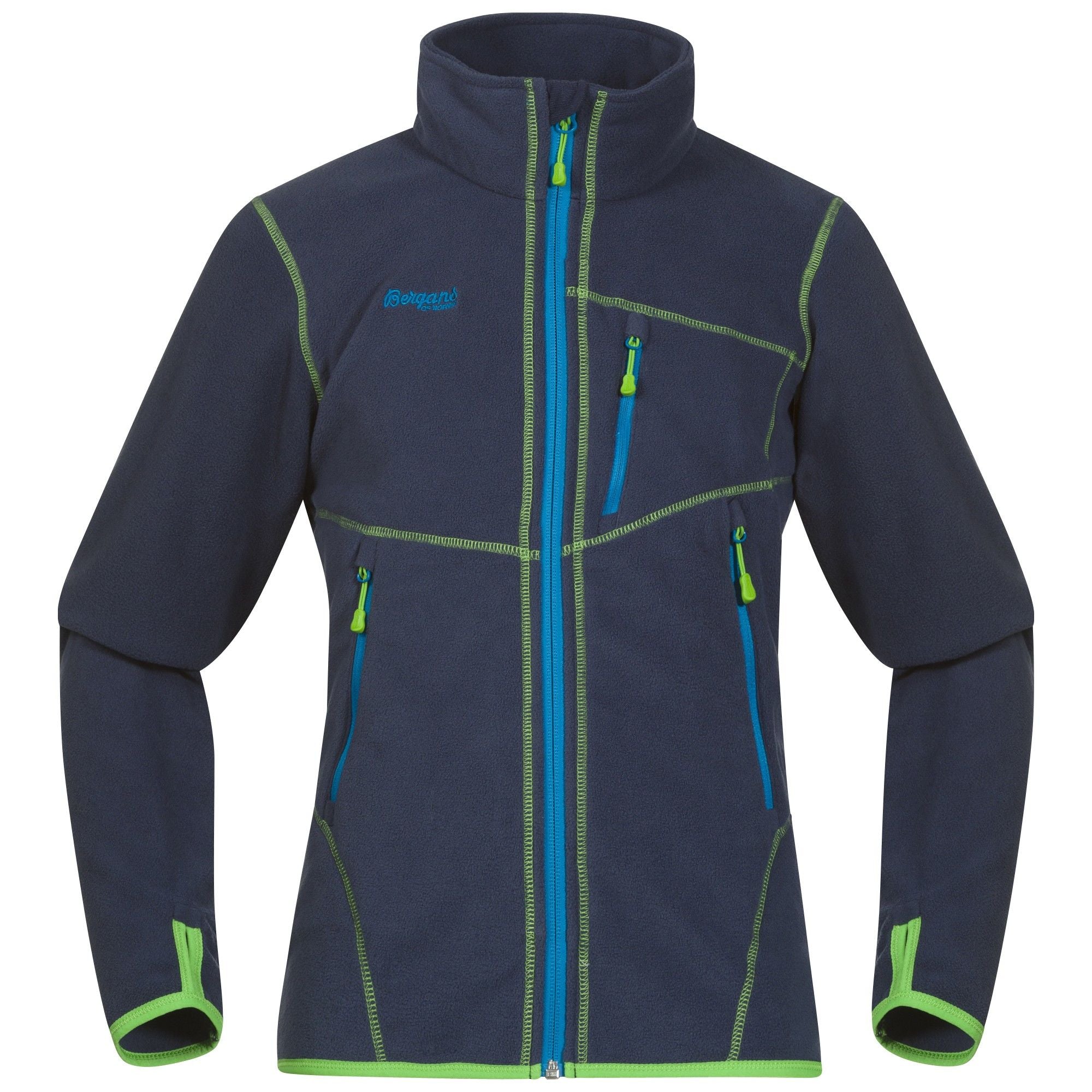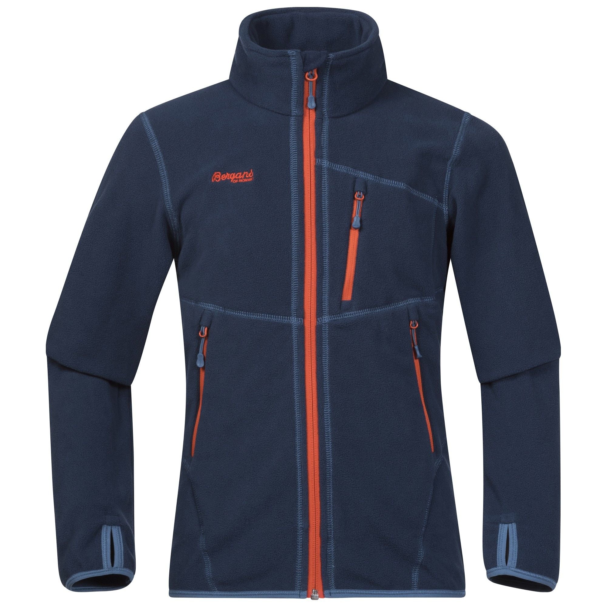 Die Runde Youth Jacket von BERGANS ist eine dünne Fleecejacke für Jungen mit Fronttaschen und Brusttasche.