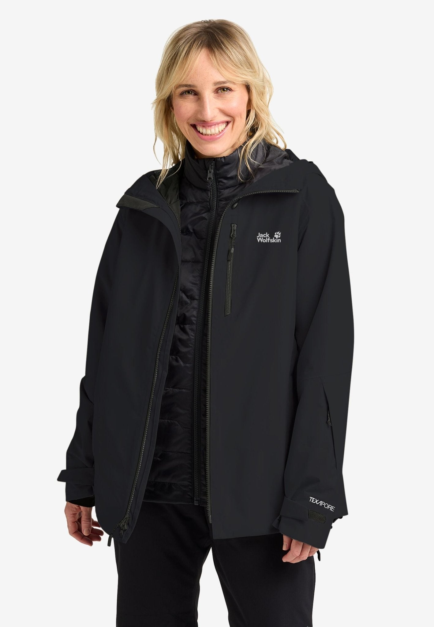 Die FLOWLINE 3IN1 Jacke kombiniert Wetterschutz und eine abnehmbare isolierende Steppjacke und ist somit dein idealer Skibegleiter und für jedes Gelände geeignet.